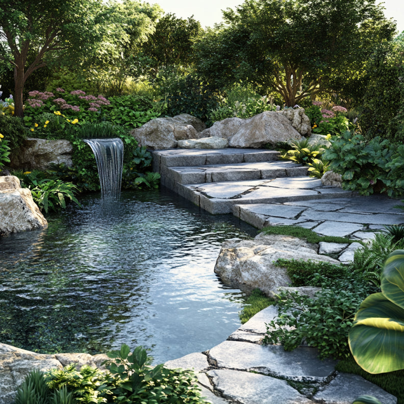 Beispielidee: Verwende Granit-Palisaden, um deinen Pool oder einen Teich stilvoll einzufassen. Die Kombination aus Wasser und Naturstein schafft einen luxuriösen Look.