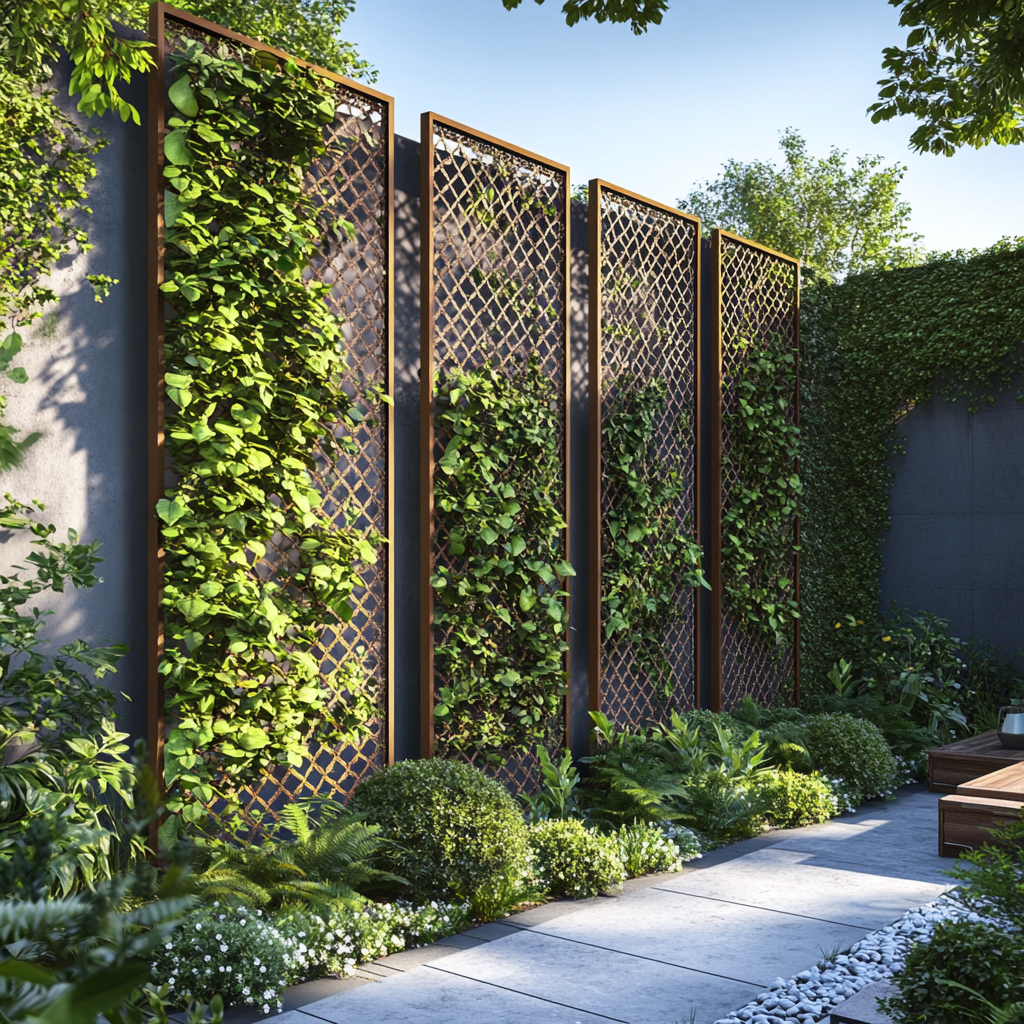Ein Garten Sichtschutz muss nicht langweilig sein. Mit Cortenstahl Palisaden kannst du moderne Designs schaffen, die zugleich funktional und ästhetisch ansprechend sind. Nutze sie in Kombination mit Kletterpflanzen, um ein grünes Highlight zu setzen.