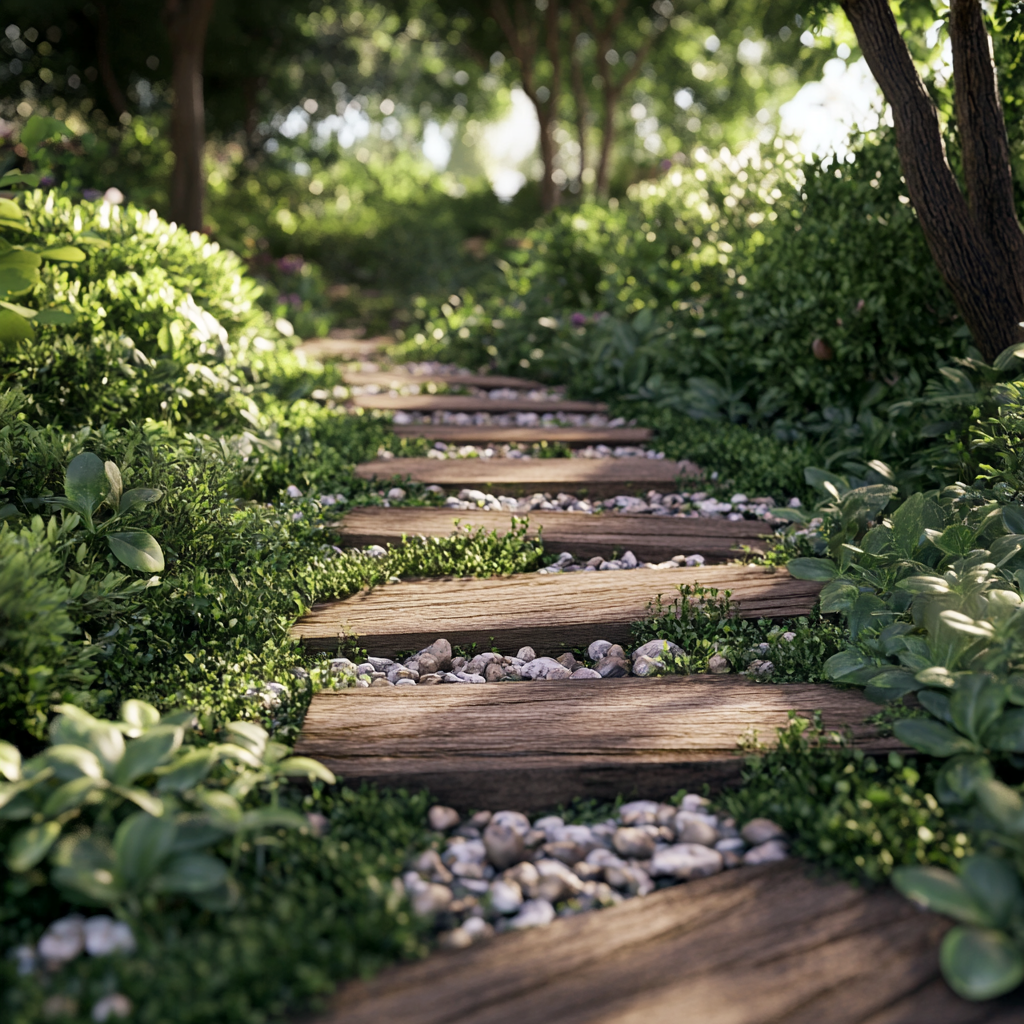 Beispielidee: Erstelle einen Weg mit Holz-Palisaden als Randbegrenzung. Ergänze die Gestaltung mit Bodendeckern oder Kies, um die natürliche Optik zu unterstreichen.